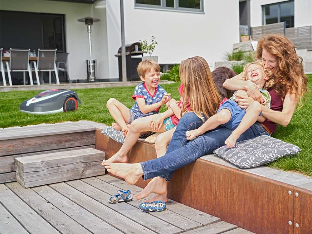 - Tempos de corte inteligentes que usam dados meteorológicos e condições do jardim para otimizar o corte.