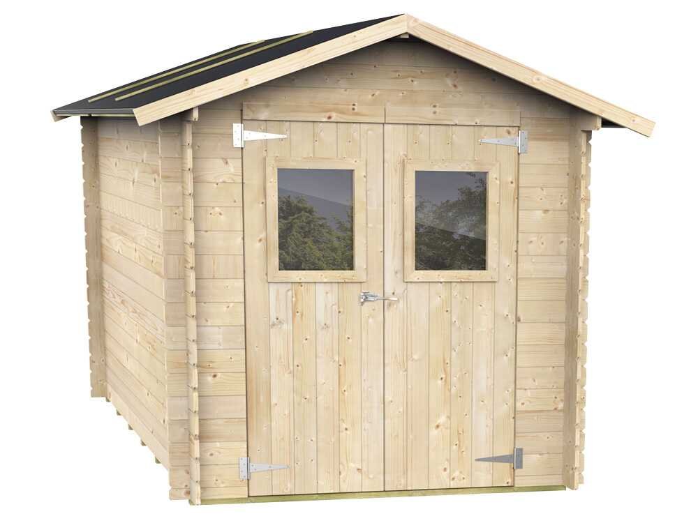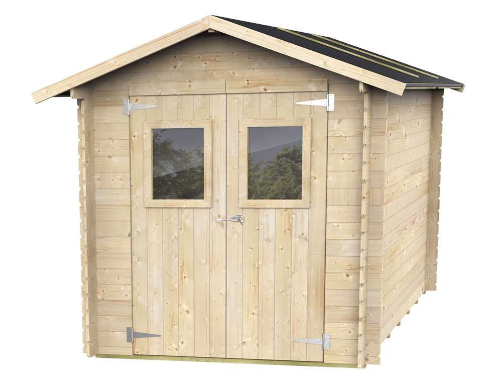 Fabricado em madeira de abeto natural, com paredes de 19 mm de espessura reforçadas pela fixação das vigas nos cantos, esta estrutura foi projetada para resistir a condições climáticas variáveis e garantir uma longa durabilidade.