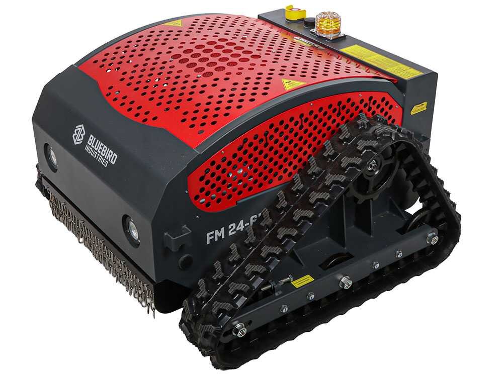 A rocadeira robô radiocomandada Blue Bird FM 24-65 é um modelo projetado para operações de corte em terrenos difíceis e inclinados. Equipada com sistema de tração por esteiras e motor híbrido, combina potência e manobrabilidade para trabalhar com erva alta, mato e sub-bosques.