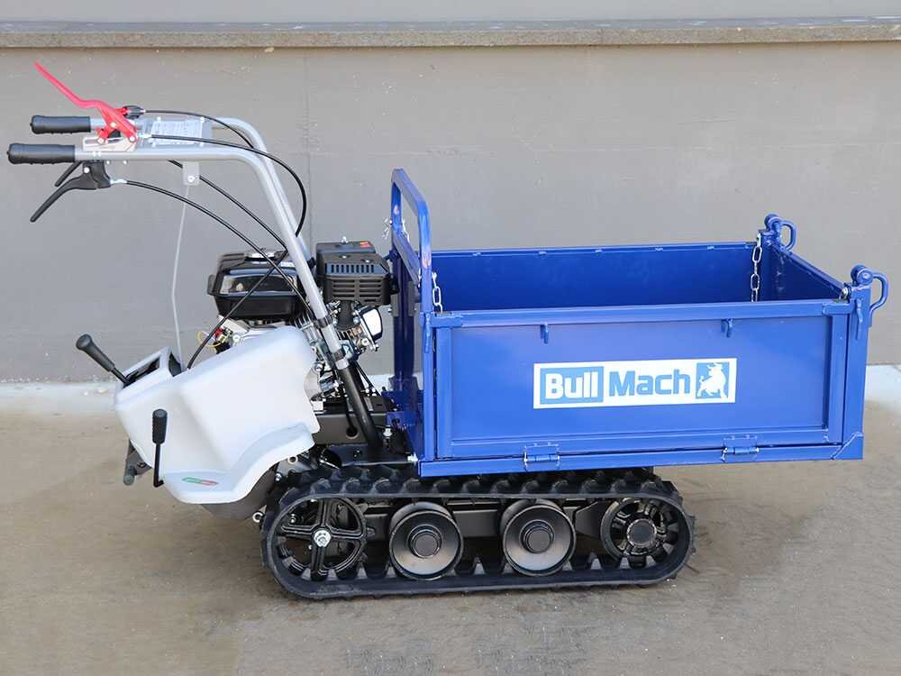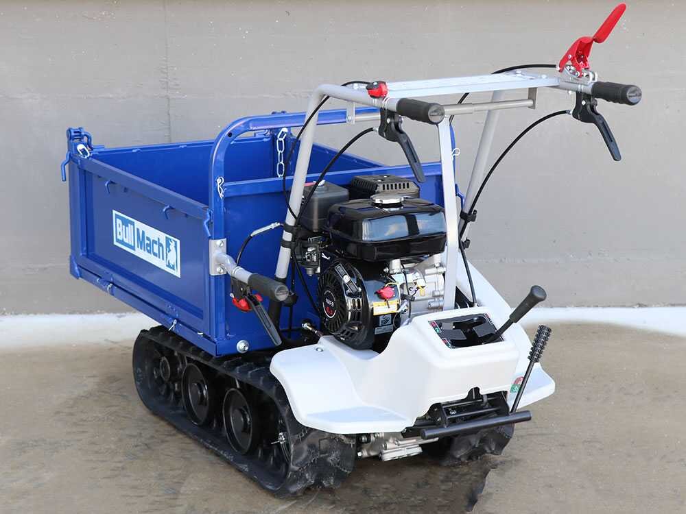 Carriola motorizada com caixote basculante e capacidade efetiva de 320 kg. Graças à tração sobre esteiras e ao motor a gasolina de 196 cm³, esta carriola é capaz de transportar cargas de 320 kg mesmo em declives, tornando-se uma ferramenta indispensável para todos os tipos de transporte (madeira, cimento, tijolos, gesso, resíduos etc.).