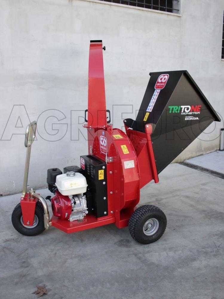 O triturador Ceccato Tritone Monster Honda GX 390 é um triturador de galhos térmico profissional, projetado para triturar grandes quantidades de resíduos vegetais. É um produto inteiramente italiano, com um alimentador amplo que facilita a carga de material vegetal volumoso. Pode triturar galhos com diâmetro máximo de 100 mm.