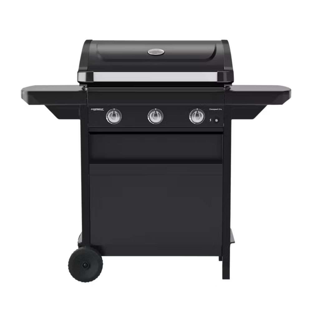 A Churrasqueira a Gás Compact 3 L Campingaz 2181054 é uma churrasqueira a gás portátil e sofisticado, perfeito para churrascos em jardins, campings ou piqueniques. Fabricado na Itália com design europeu, seus 3 queimadores de aço aluminizado (7.500 W) garantem calor uniforme, enquanto o acendimento piezoelétrico, o termômetro prático, as mesas laterais rebatíveis, a bandeja de gordura acessível e as 2 rodas grandes oferecem facilidade de uso, limpeza e transporte. Inclui mangueira e regulador.