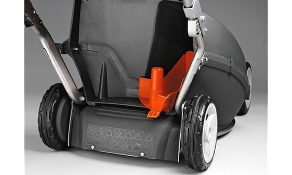 Vem com um saco de bloqueador de poeira projetado para manter a poeira no saco e recolher os caules da erva para ter menos restos no relvado e um aspeto mais arrumado.