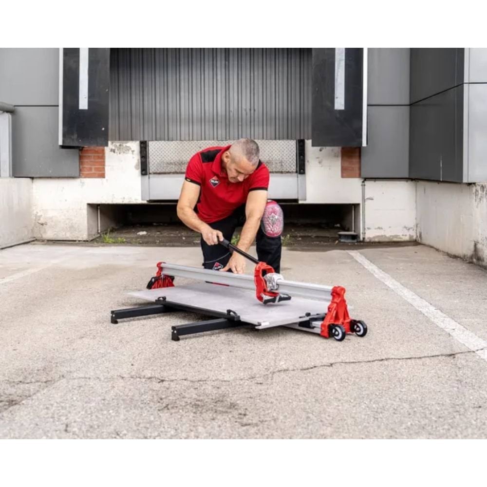 O Cortador RCH-1600 RS Rubi 27923 é uma ferramenta manual de alta precisão, projetada para profissionais que trabalham com azulejos cerâmicos, grés porcelânico e outros materiais de grande formato. Com uma estrutura em alumínio leve e resistente, permite cortes retos de até 160 cm e cortes diagonais em peças de até 113×113 cm. Equipado com o sistema MAGNET, que permite bloquear e desbloquear o pisador com uma única mão, oferece maior velocidade e precisão no corte. O separador multiponto proporciona uma força de até 950 kg, ideal para materiais de espessura de 5 a 18 mm. Inclui rodas e alça para transporte, além de uma maleta reforçada para proteção, sendo perfeito para obras de construção e renovação que exigem cortes em larga escala.