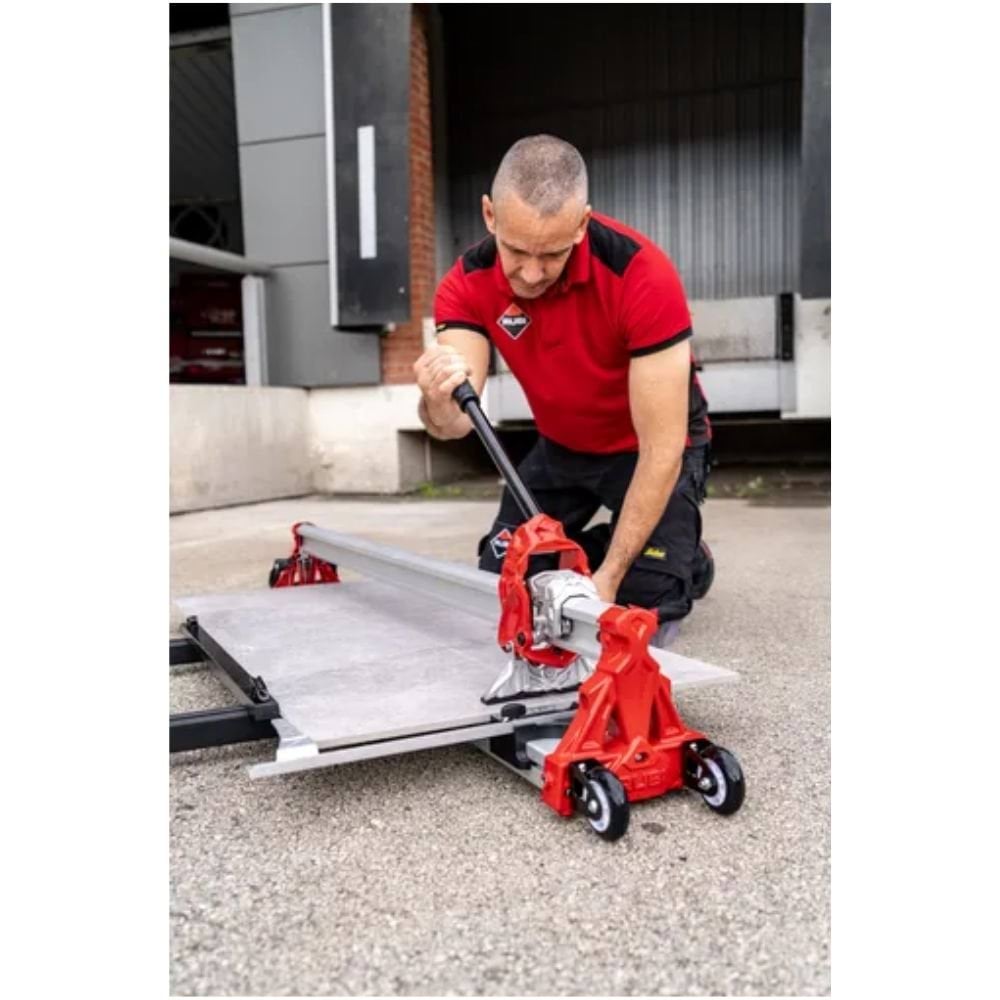 O Cortador RCH-850 RS Rubi 27921 é uma ferramenta manual de alta precisão, projetada para profissionais que trabalham com azulejos cerâmicos, grés porcelânico e outros materiais de construção. Com uma base reforçada e guias laterais ajustáveis, permite cortes retos de até 85 cm e cortes diagonais em peças de até 60×60 cm. Equipado com um sistema de corte reforçado e separador de 2 mm, oferece cortes limpos e eficientes, mesmo em materiais de maior espessura. A versão RS inclui melhorias como maior resistência e ergonomia, com alavanca de quebra de curso longo para facilitar o uso. A estrutura robusta em aço e alumínio garante durabilidade, sendo ideal para instalação de pavimentos e revestimentos em obras de construção e renovação.
