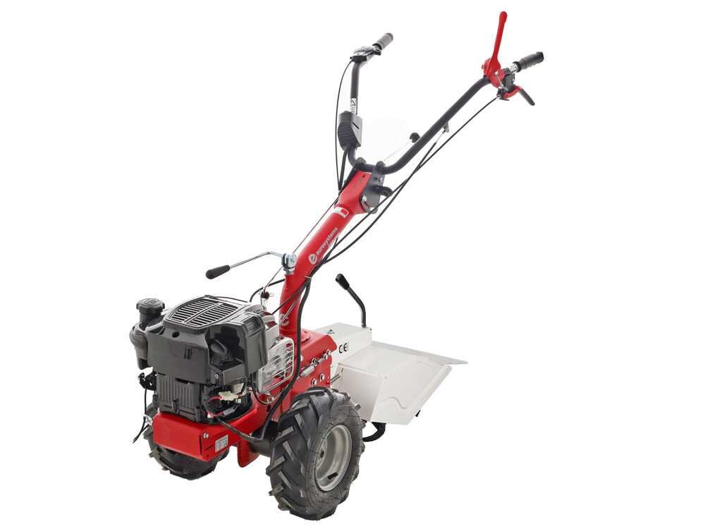 O motocultivador dispõe de uma transmissão mecânica de duas velocidades, com marcha à frente e marcha-atrás, que facilita as operações de avanço e manobra em espaços reduzidos. As rodas motrizes pneumáticas de grande diâmetro (13 x 5,00-6) garantem excelente tração mesmo em superfícies irregulares e estão equipadas com um dispositivo de bloqueio para maior estabilidade.
