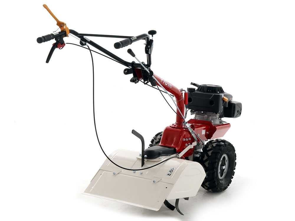 O motocultivador é acionado por uma caixa de 5 velocidades, das quais apenas 3 são utilizáveis para as funções da máquina (2 marchas à frente e 1 marcha à ré), sendo as mais lentas, portanto mais adequadas para o uso específico como motocultivador para trabalhar o solo.
