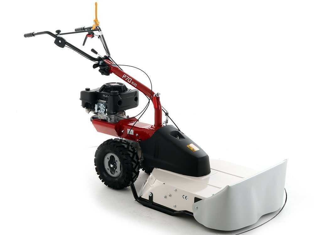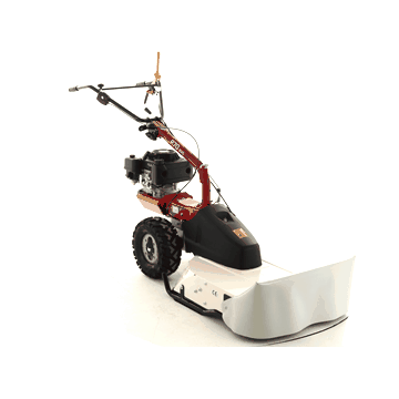Il s’agit d’une innovante tondeuse débroussailleuse autotractée, entraînée par de grandes roues à profil agraire, reliées par une transmission à engrenages par bain d’huile, et entraînées par une boîte à 5 vitesses (3 avant + 2 vers l’arrière).