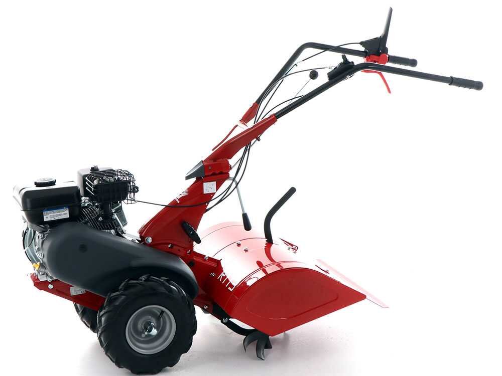 Dispõe de tração em rodas pneumáticas escavadas com perfil Tractor, garantindo excelente tração em terrenos relativamente planos, sem pedras e macios ou já trabalhados. A largura total limitada assegura boa maniobrabilidade mesmo em espaços muito reduzidos, enquanto os sistemas de segurança eficazes aplicados ao motocultivador e o freio de estacionamento automático garantem máxima segurança.