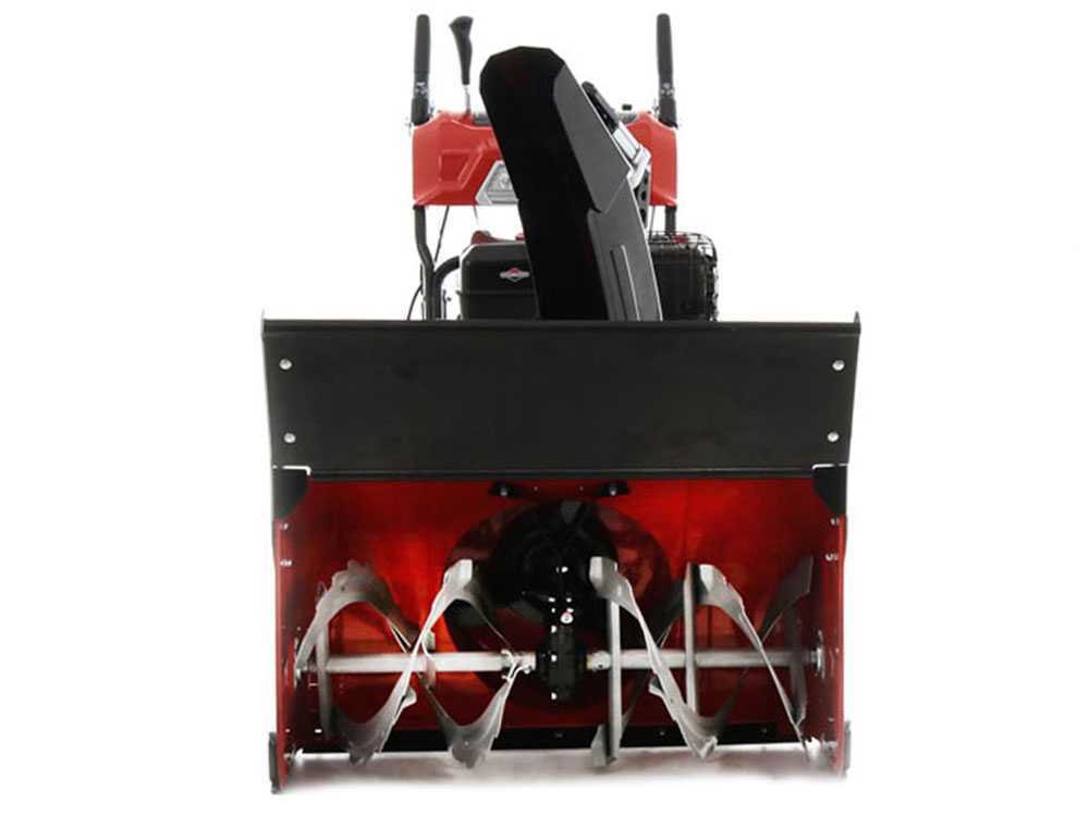 Neve transportada pela fresadora e expulsa via rotor centrífugo de alta velocidade, com reforços. Redutor angular de alumínio, engrenagens de aço em banho de óleo. Placas de proteção inferiores ajustáveis permitem trabalhar em diversos tipos de terreno, incluindo cascalho.