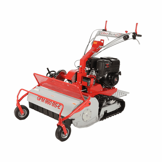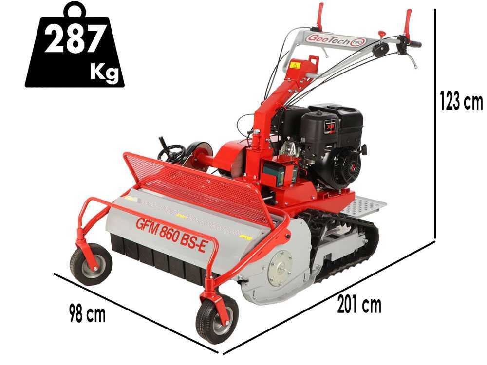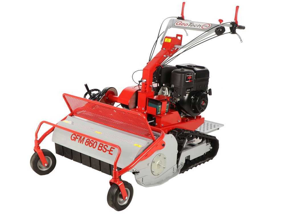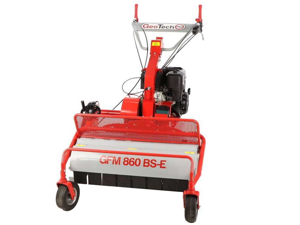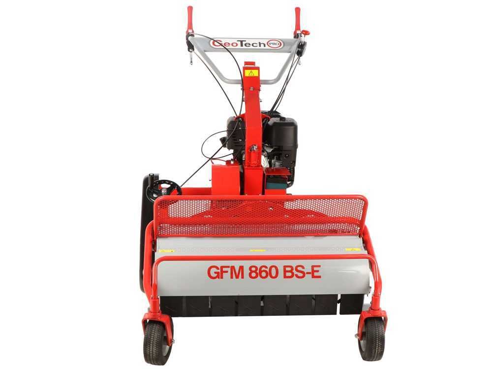 A roçadora GeoTech-Pro GFM 860 BS-E é uma máquina projetada especificamente para cortar grama alta, densa e não cultivada em campos agrícolas.