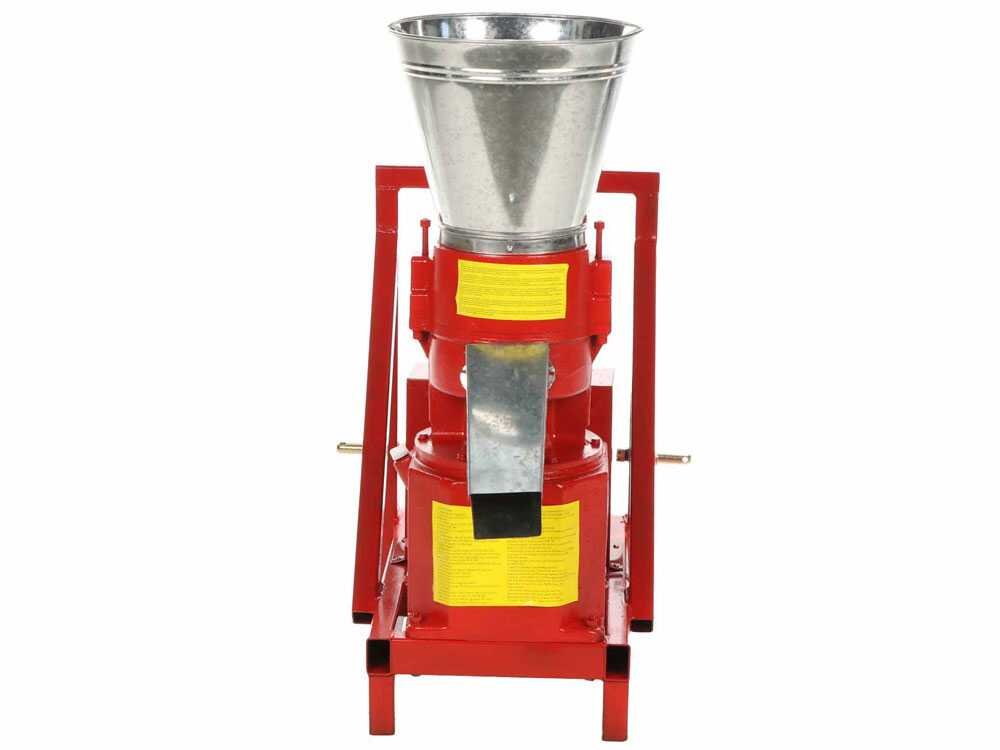 O rendimento horário da prensa de pellets varia entre 110 e 140 kg e produz pellets (graças à matriz incluída) com diâmetro de 6 mm e comprimento entre 25 e 35 mm.
