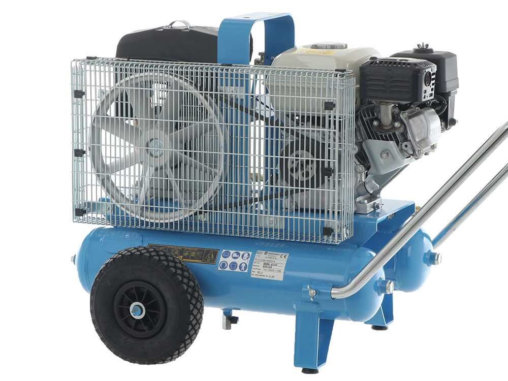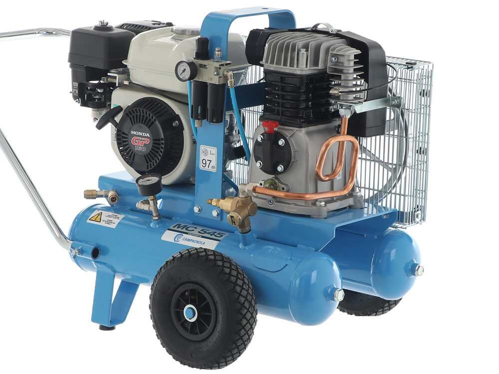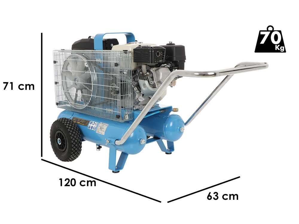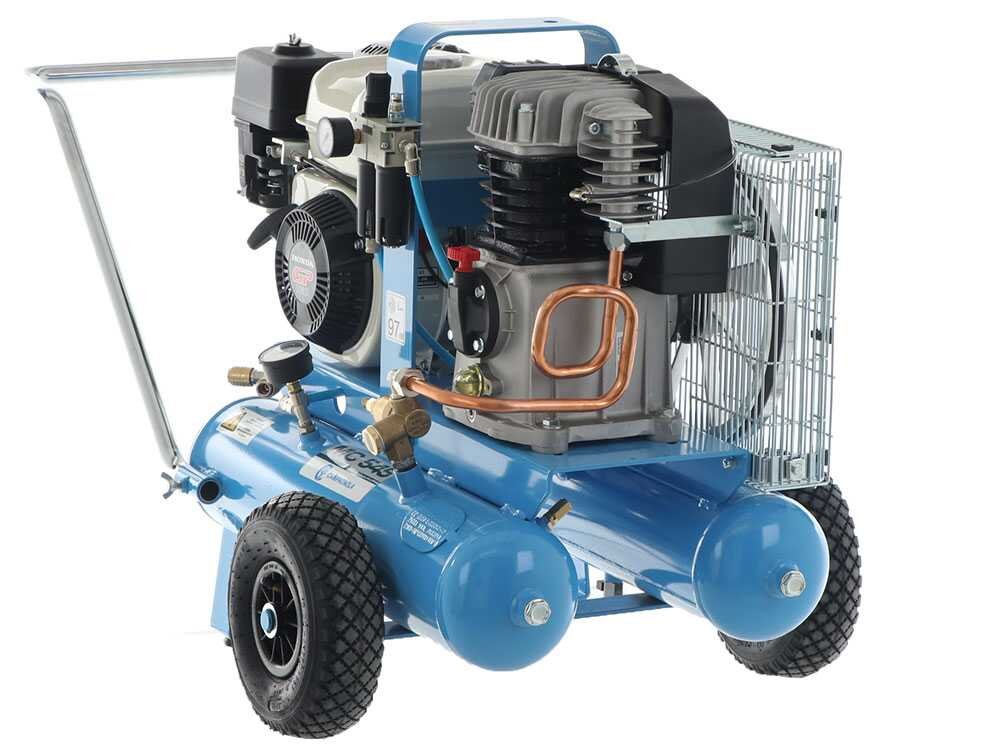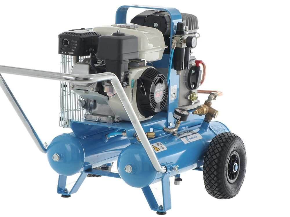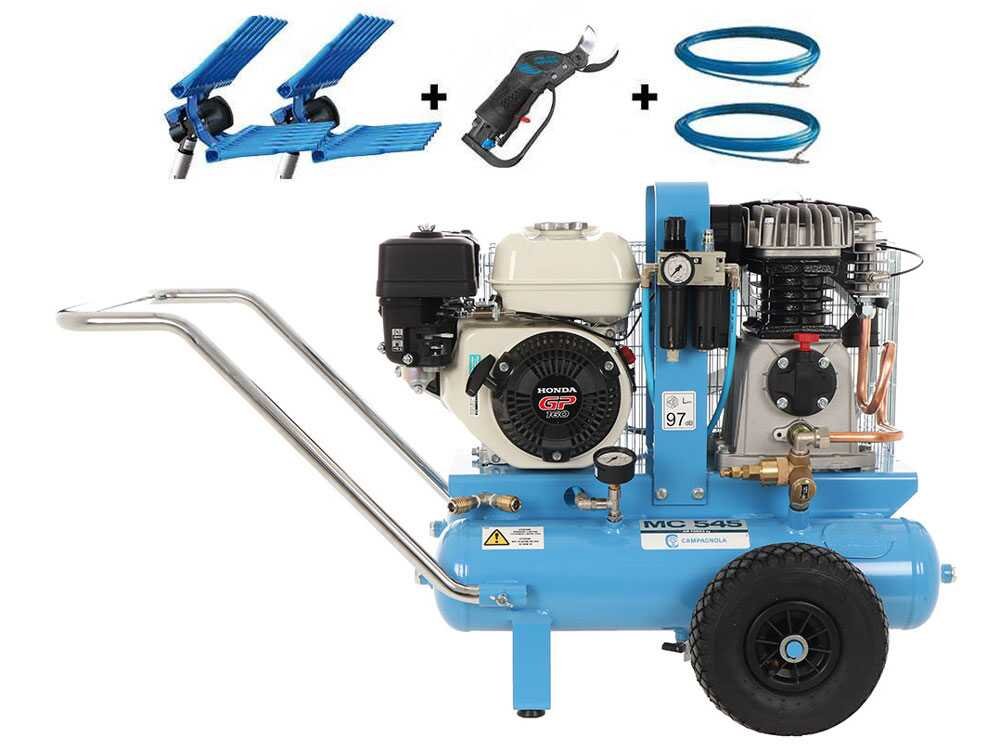 Compressor a motor térmico para alimentar ferramentas pneumáticas de poda e colheita.