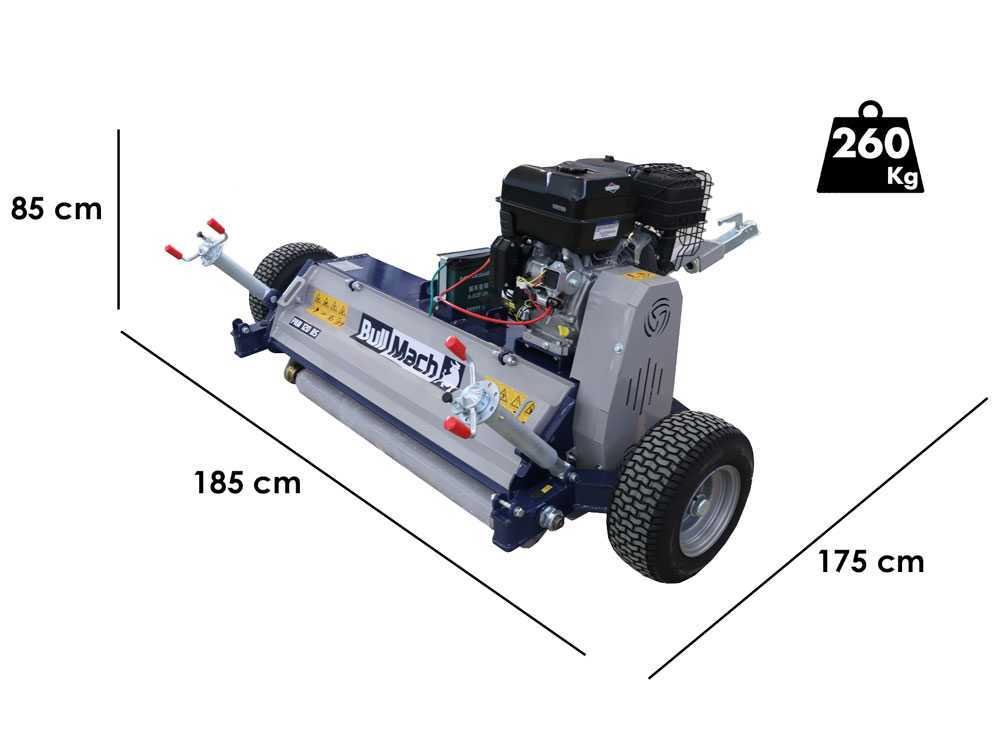 A roçadora a motor para quadriciclo BullMach PAN 120 BS está equipada com um motor térmico potente, projetado para ser rebocado por quadriciclos ou cortadores de relva autopropelidos.