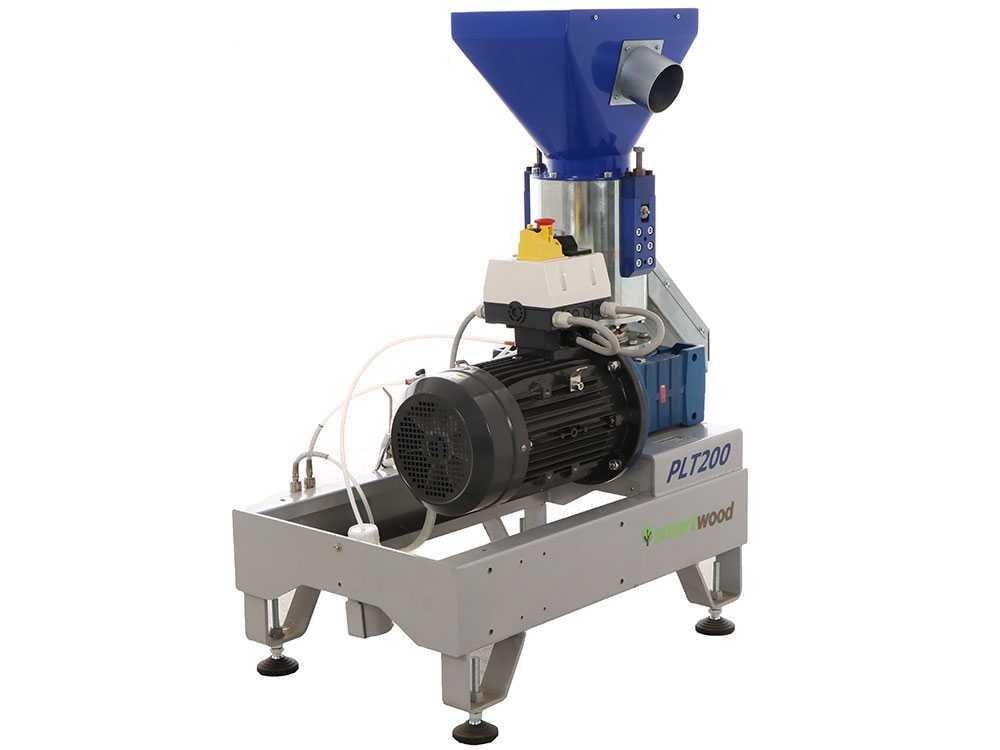 Para o uso deste modelo, recomenda-se fortemente conectá-lo a um sistema de ar comprimido para separar os vapores produzidos durante a termoformagem do pellet e manter o equilíbrio térmico da câmara de trituração. Também é possível conectar um pequeno aspirador à tremonha de carga da PLT-200B para remover poeiras geradas durante a alimentação da biomassa na máquina.