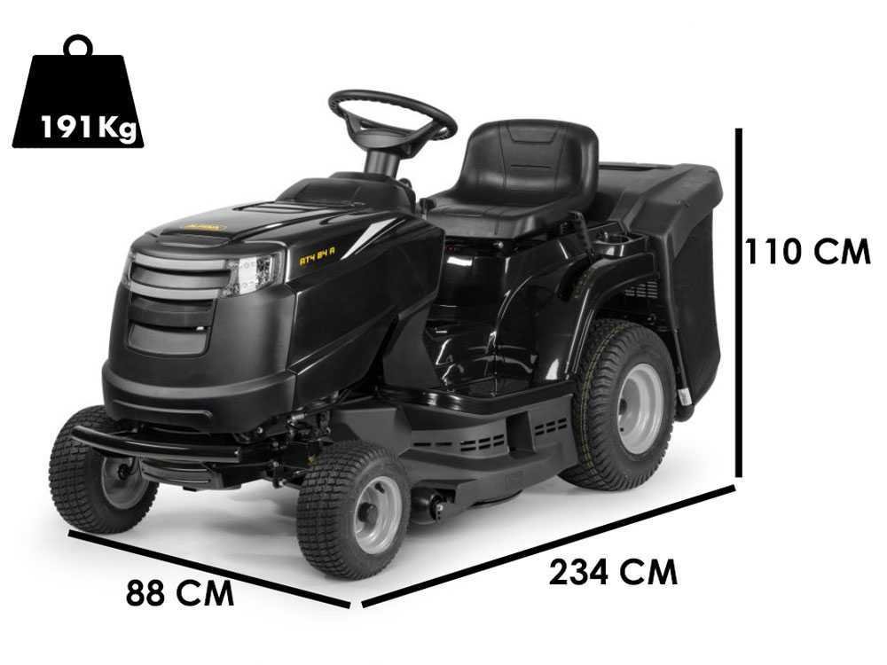 Grâce au grand carter de coupe à 2 lames de 84 cm et au grand bac de ramassage 200 litres, la tondeuse autoportée est tout à fait adaptée à la tonte de l’herbe même sur des surfaces moyennement grandes.