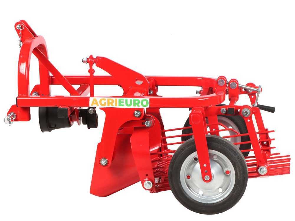 A profundidade de penetração do arado é ajustável por meio das rodas de suporte localizadas na parte traseira da máquina, permitindo adaptação precisa às diferentes condições do solo e às necessidades específicas da colheita.