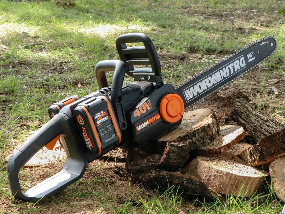 Pour ceux qui ont besoin de couper du bois sans le bruit d’un moteur thermique, la tronçonneuse WORX NITRO WG385E représente la meilleure solution. Son poids et sa praticité n’ont pas d’égal par rapport aux autres modèles. Cette tronçonneuse électrique est vraiment très légère, elle ne pèse que 5,5 kg avec la batterie comprise.