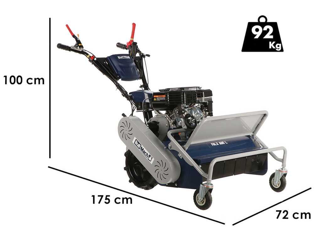 Com uma largura de corte de 60 cm, a FALX 600 L garante ampla cobertura a cada passagem, reduzindo os movimentos necessários e o tempo de trabalho, especialmente em superfícies médias. A ação das lâminas proporciona um corte fino e uniforme, facilitando a decomposição da vegetação e favorecendo a fertilização natural do solo.